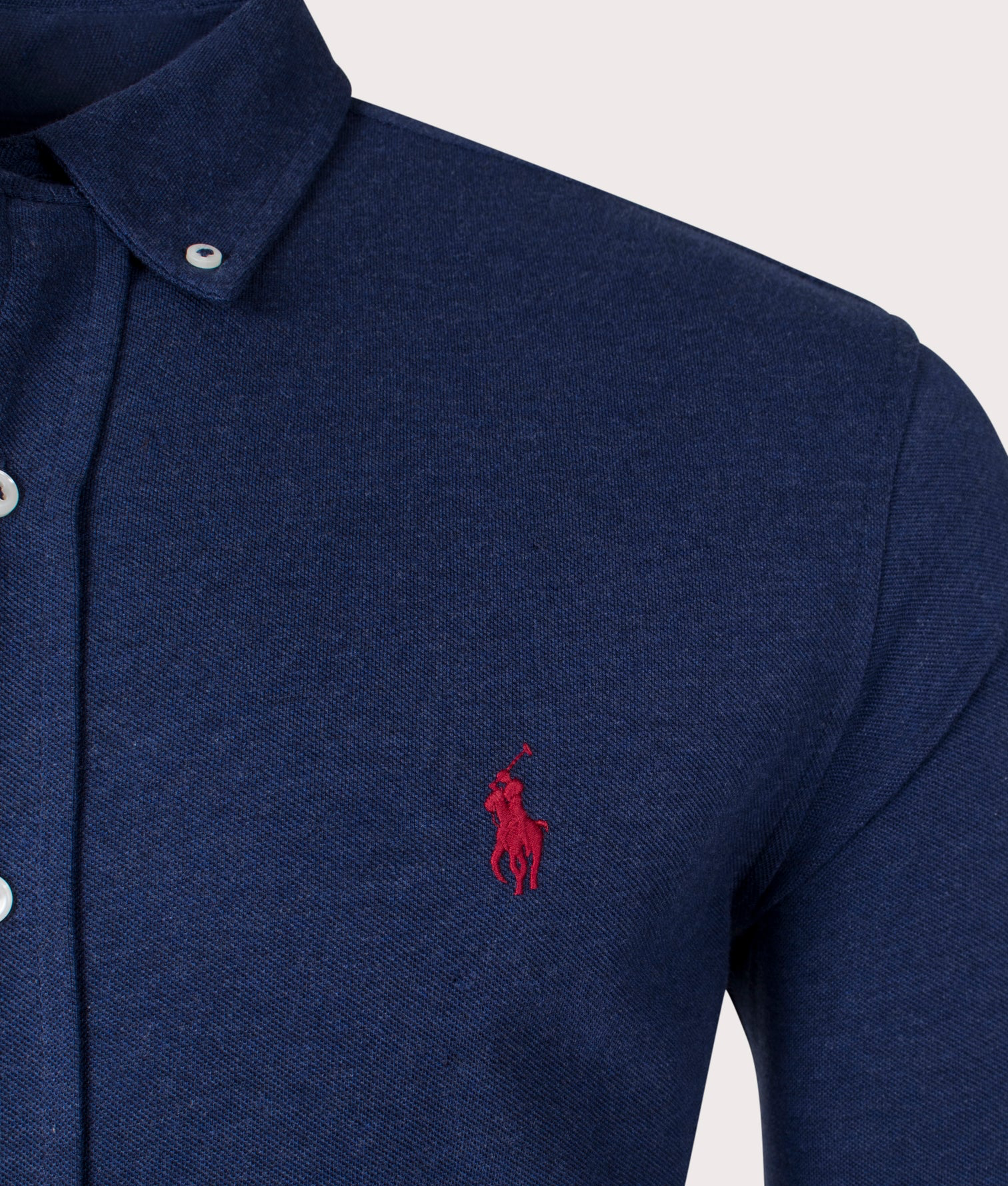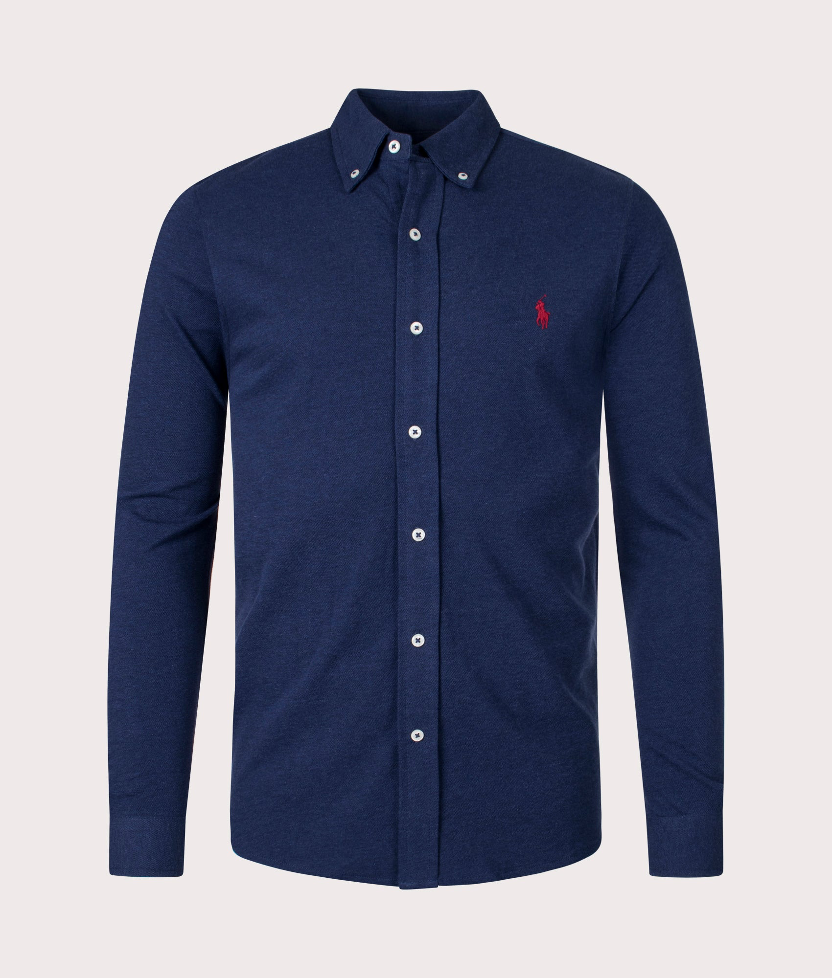 The Relaxed Fit Featherweight Mesh Shirt in 'Spring Navy Heather' by Polo Ralph Lauren is a regular fitting, long sleeved shirt that has been crafted from a lightweight cotton mesh fabric. This shirt is an ultrathin layer, making it perfect for hotter days with still maintaining that smart look. It also incorporates a rear box pleat, allowing for a greater range of motion. Featuring the signature Polo Ralph Lauren pony, which is embroidered to the chest in a contrast fashion.