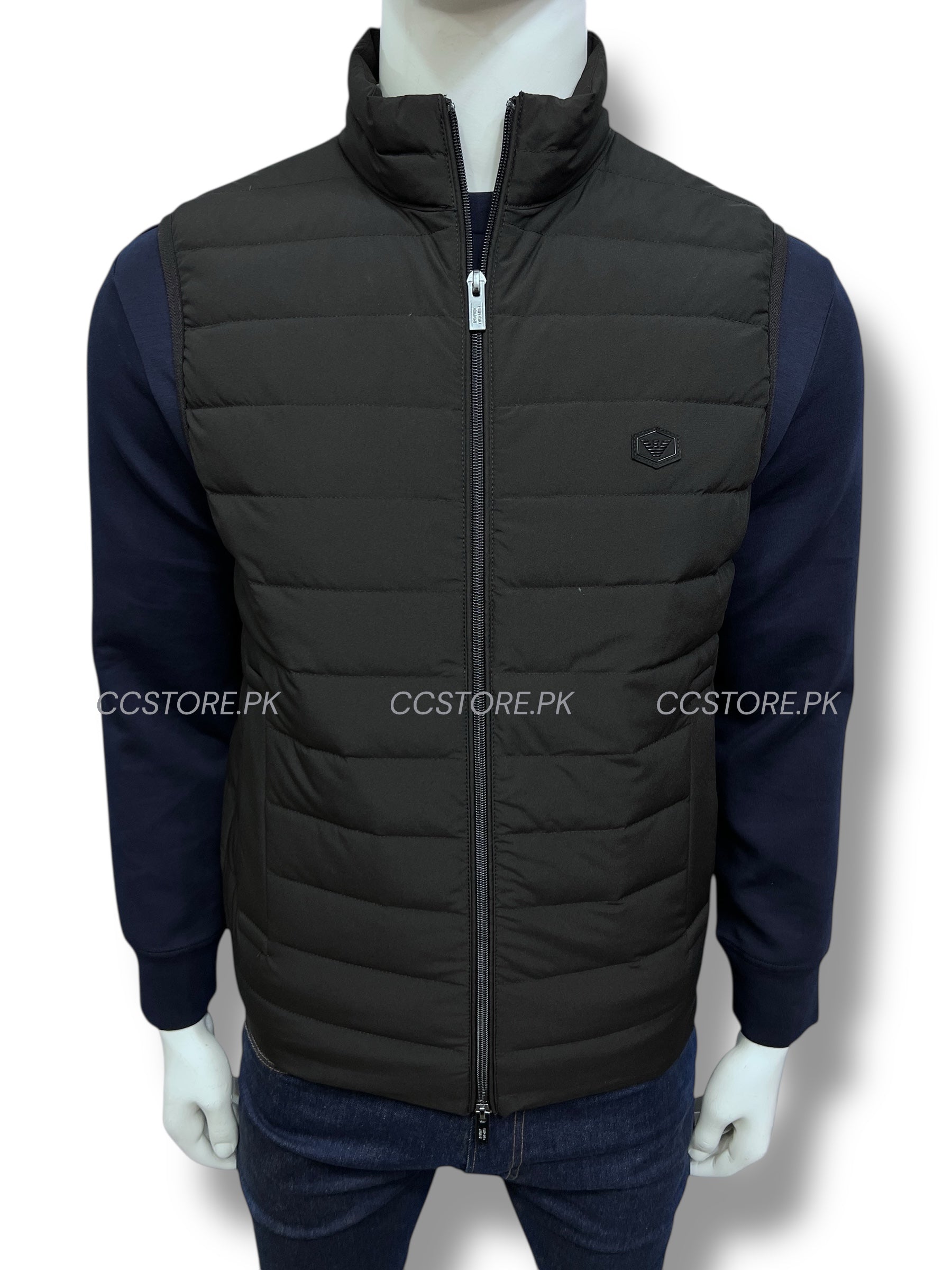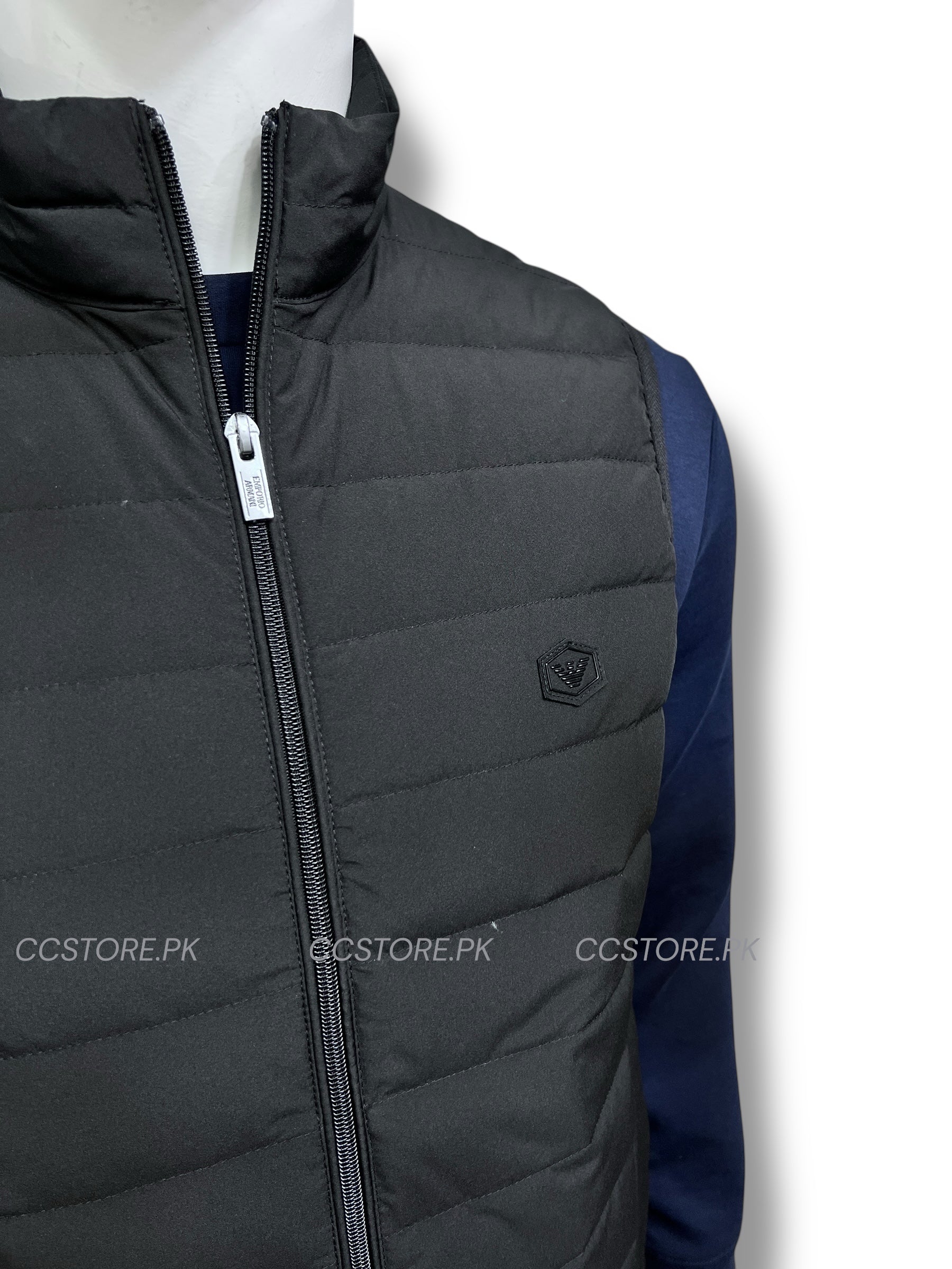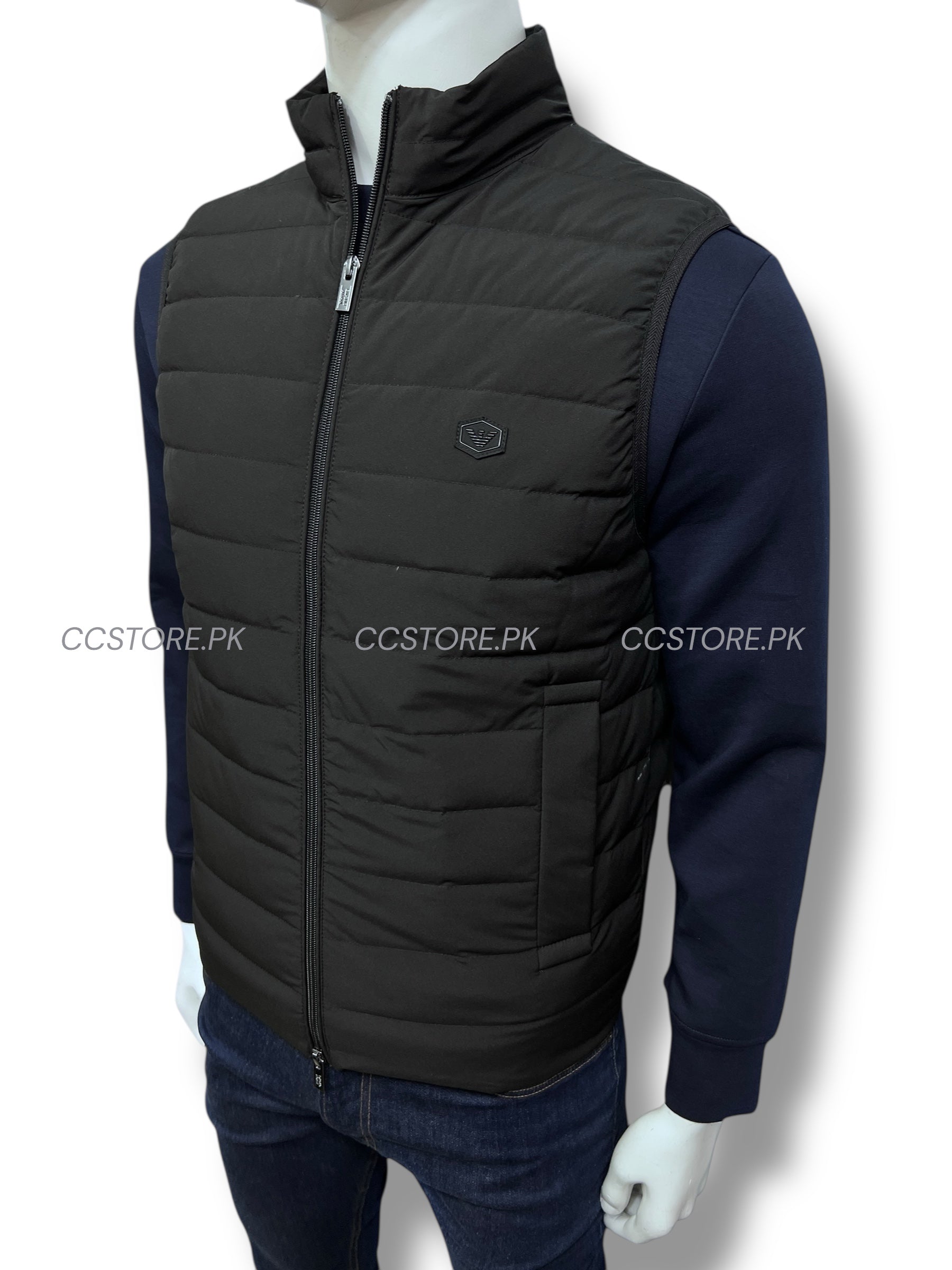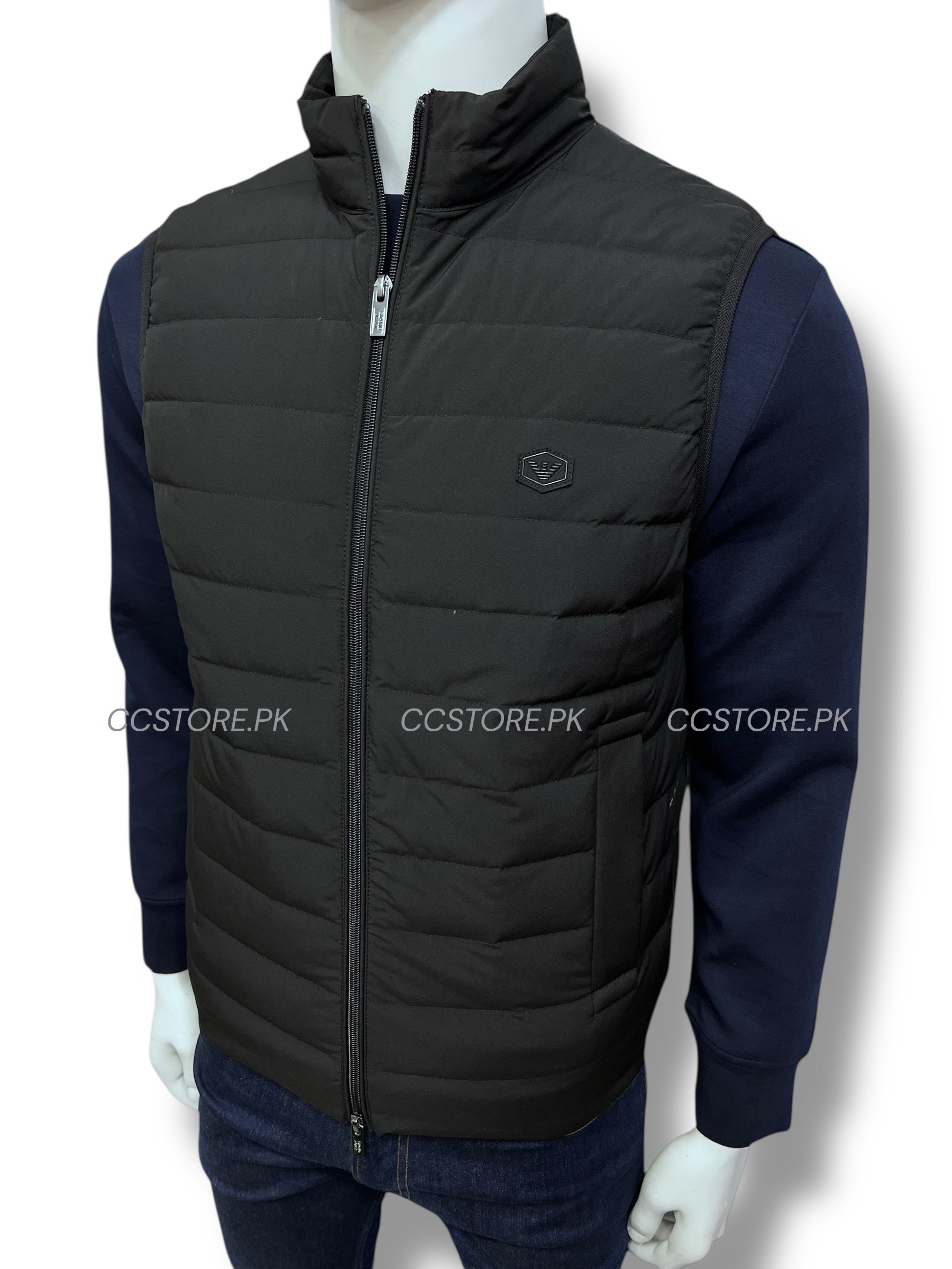 Sleeveless nylon down jacket with full-zip fastening and eagle patch on the chest. The simple, modern nature of this men’s down jacket is enhanced by genuine feather padding and a matelassé effect. The perfect item for urban day wear. This item belongs to the Essentials clothing selection, the Emporio Armani capsule collection that is an evergreen statement of style: an ongoing collection with clean, well-designed shapes for a wardrobe that meets the demands of any season. These “essential”, versatile pieces are a must-have for the male wardrobe.