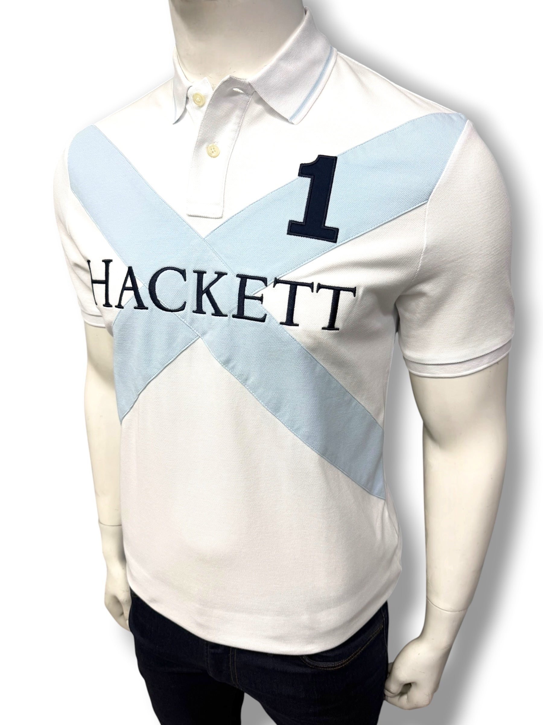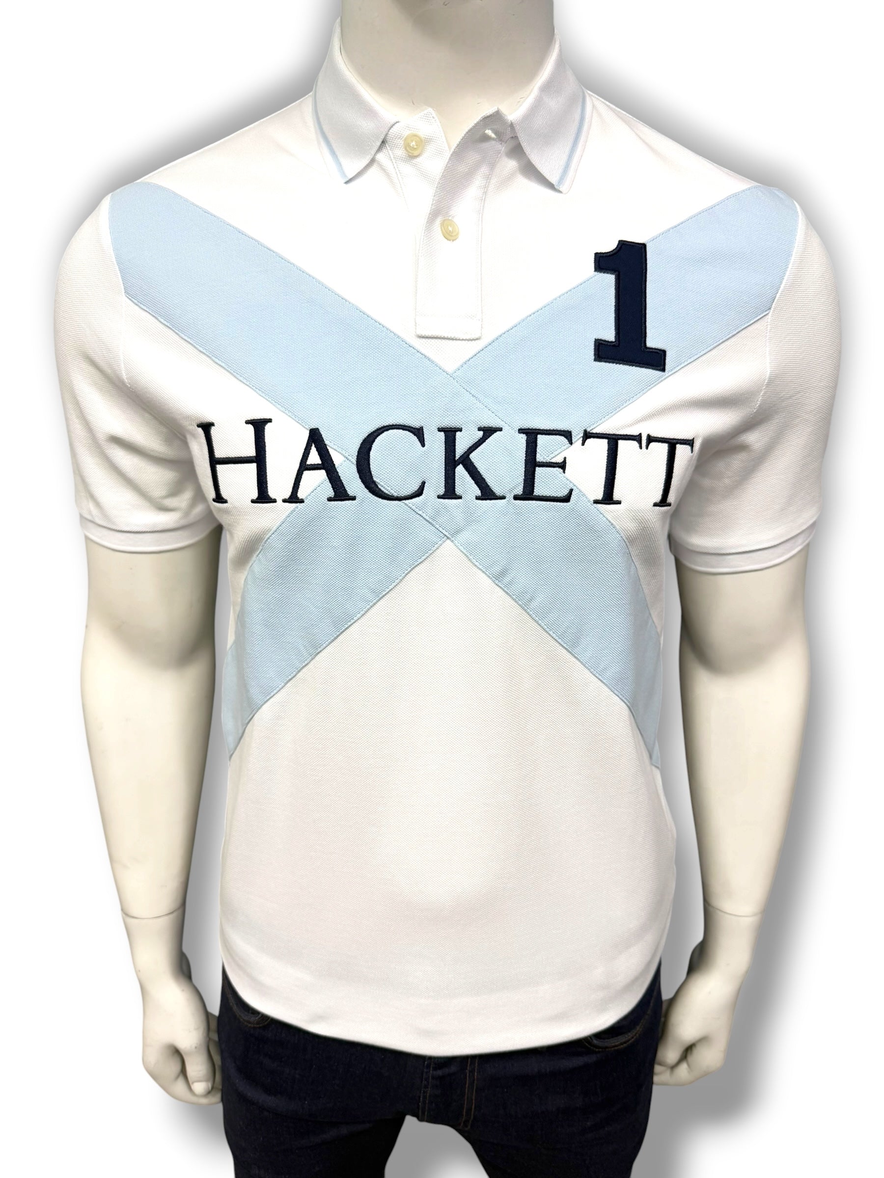 Hackett Cross Sash Front Embroidered White Polo