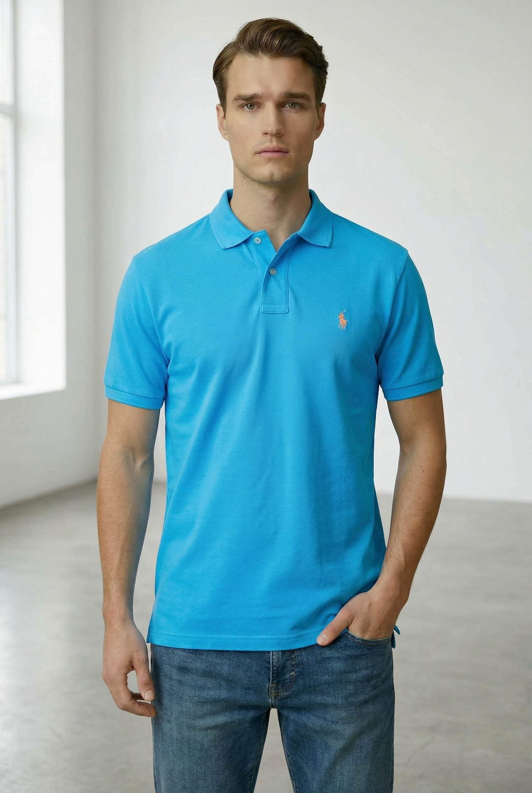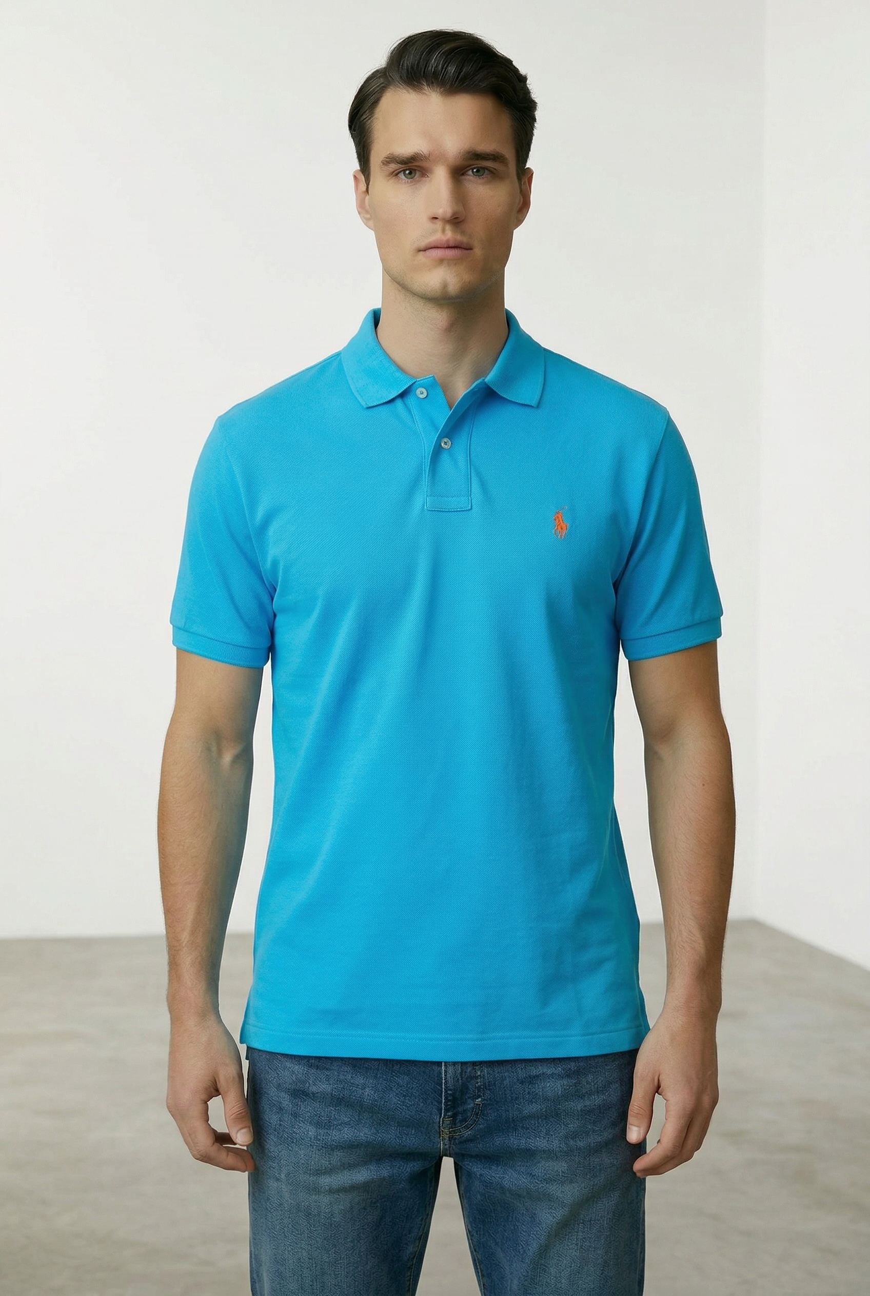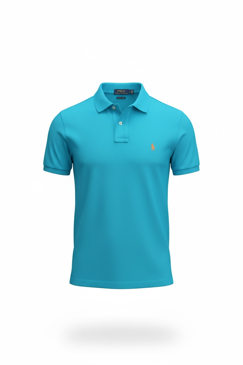 RL Custom Slim Fit Mesh Sea Blue Polo