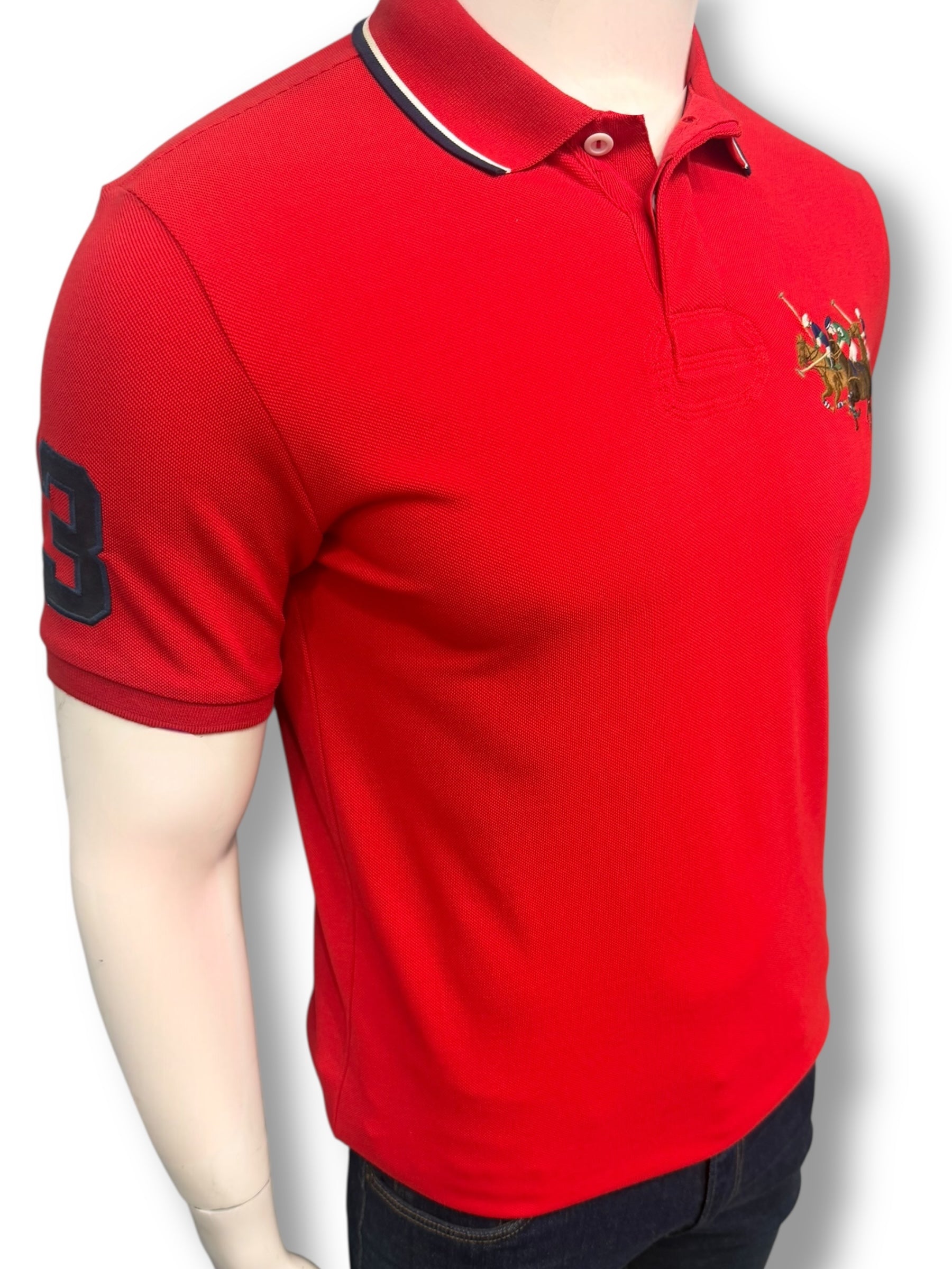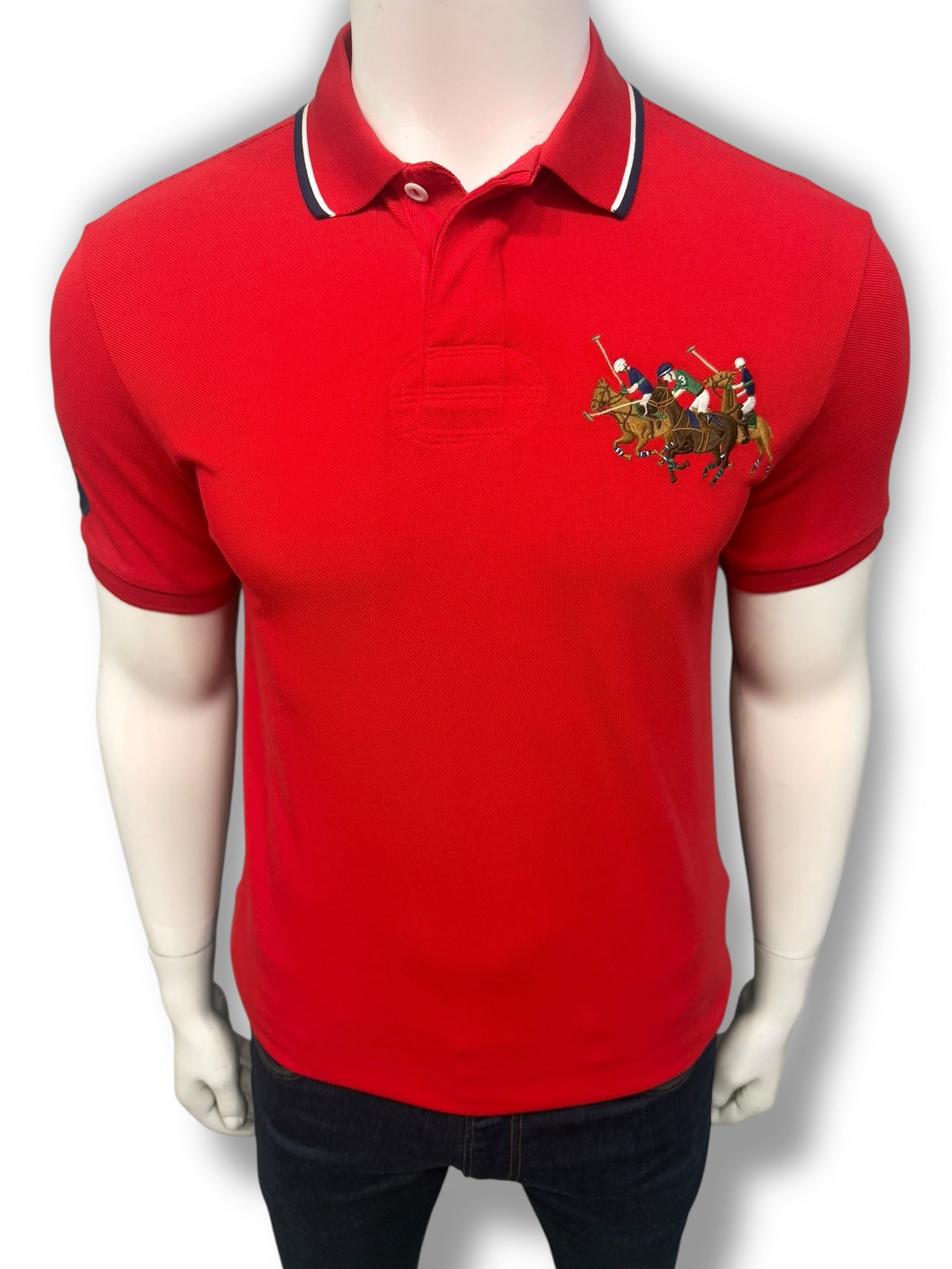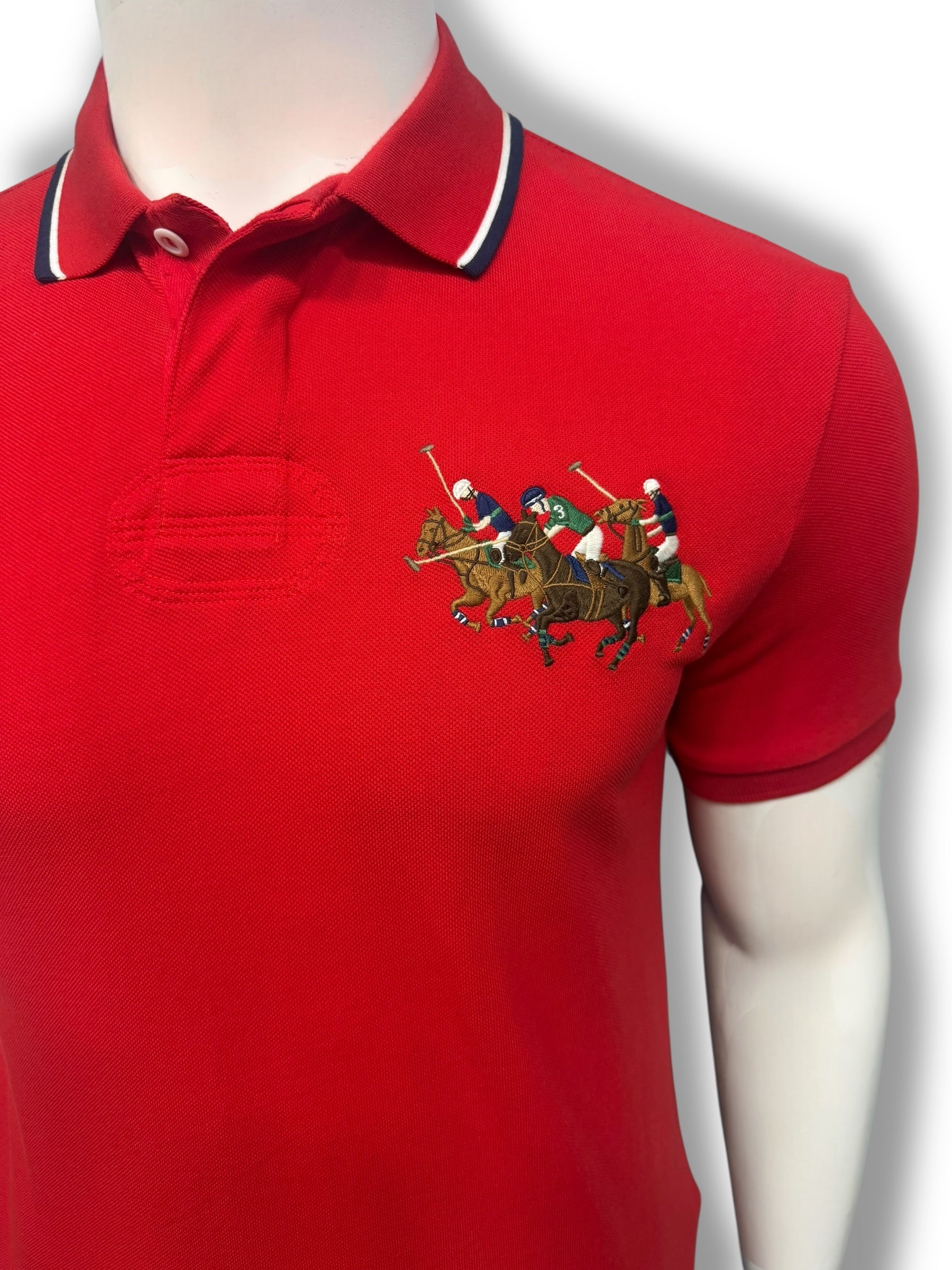 RL Custom Slim Fit Tipped Collar Triple Pony Red Polo
