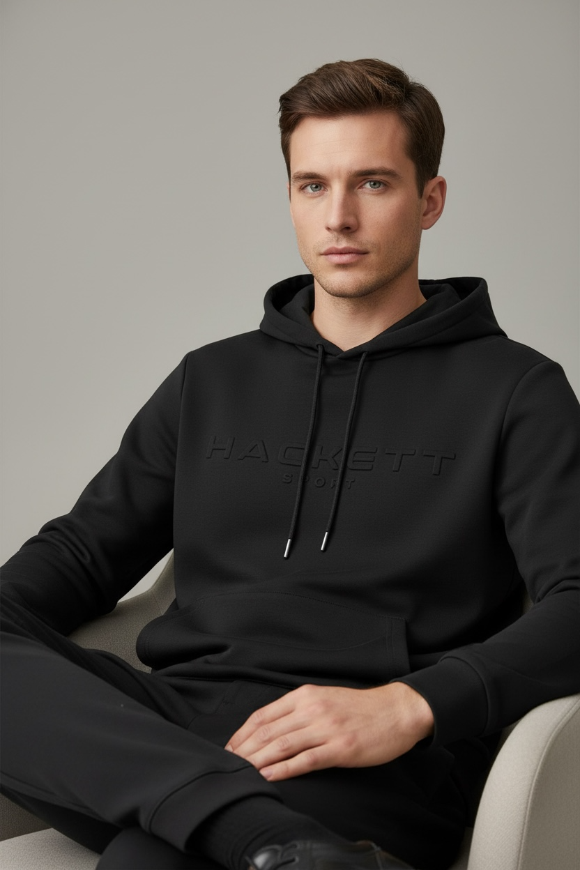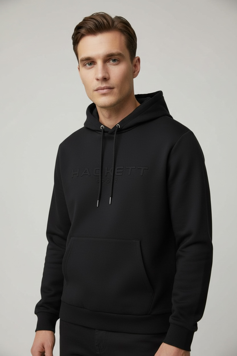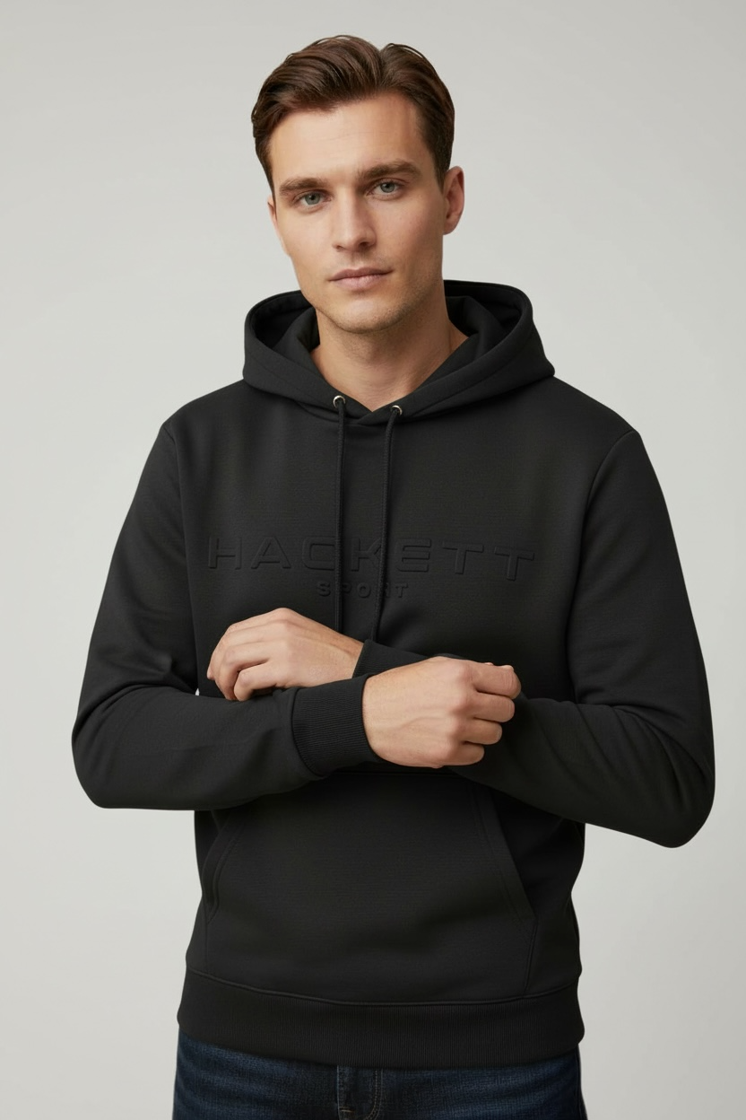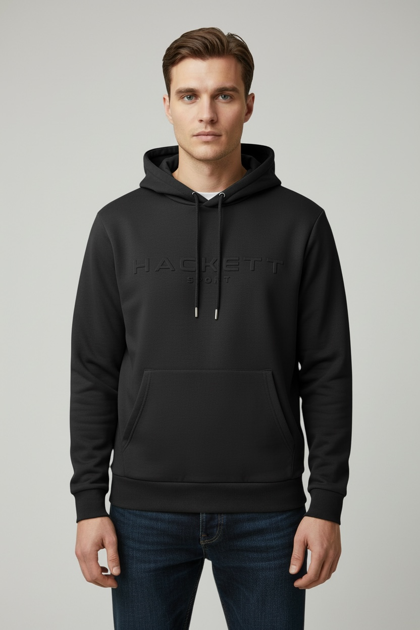 PRODUCT DETAILS HM581265 - Cotton and polyester fleece hoodie- HACKETT SPORT Collection- Classic fit- Lightweight stretch fabric- Adjustable drawstring hood- Kangaroo pocket- Ribbed detail on cuffs and hem- Solid colour- Tonal...
