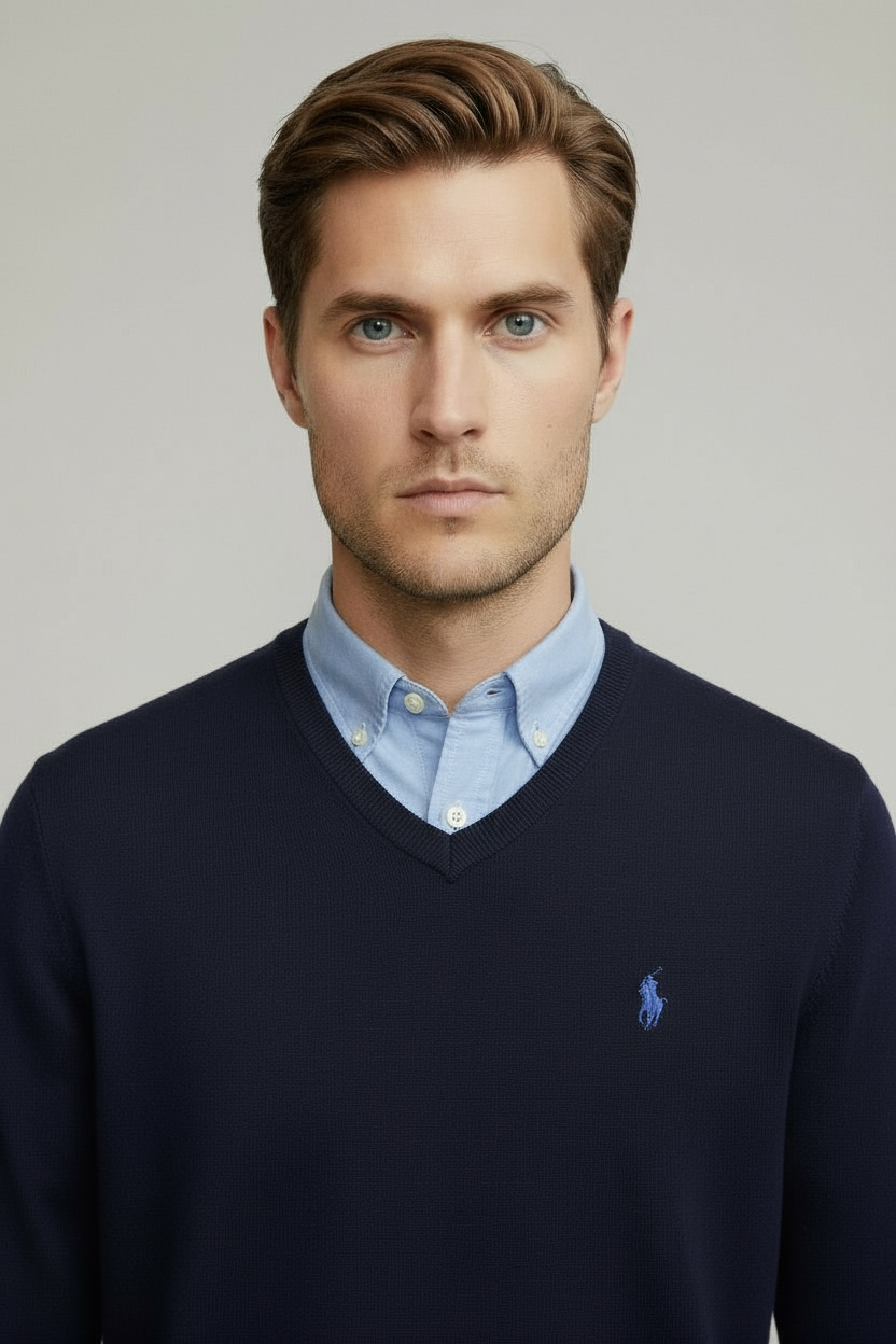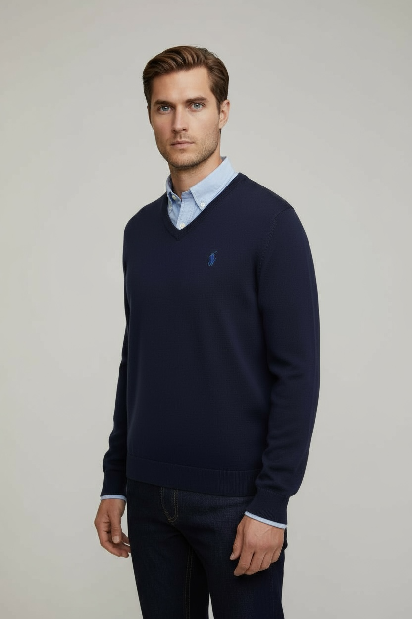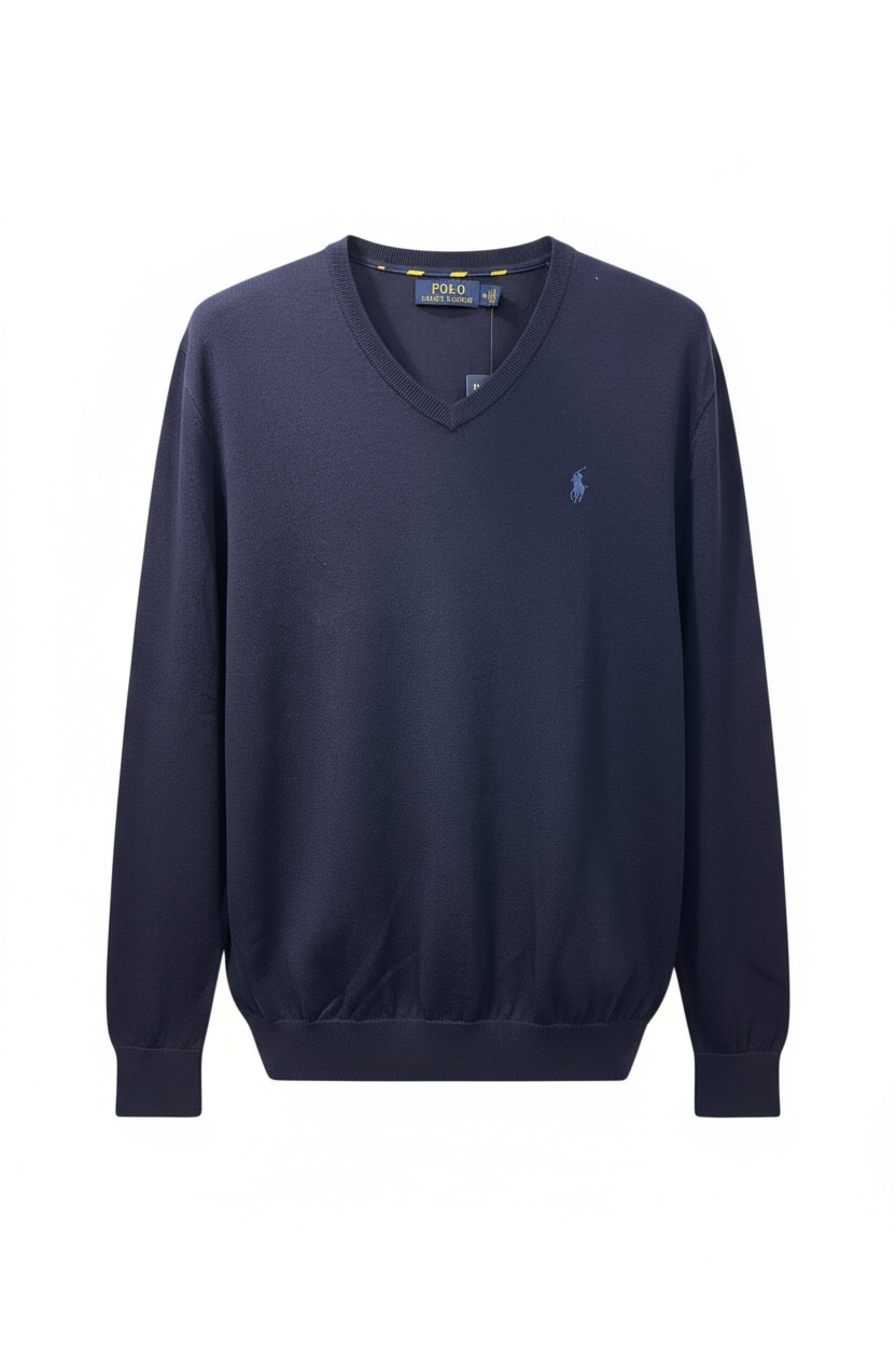 RL Navy Blue V-Neck Cotton Regular Fit Sweater