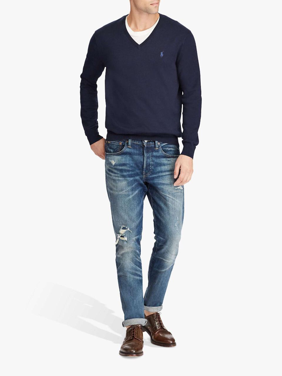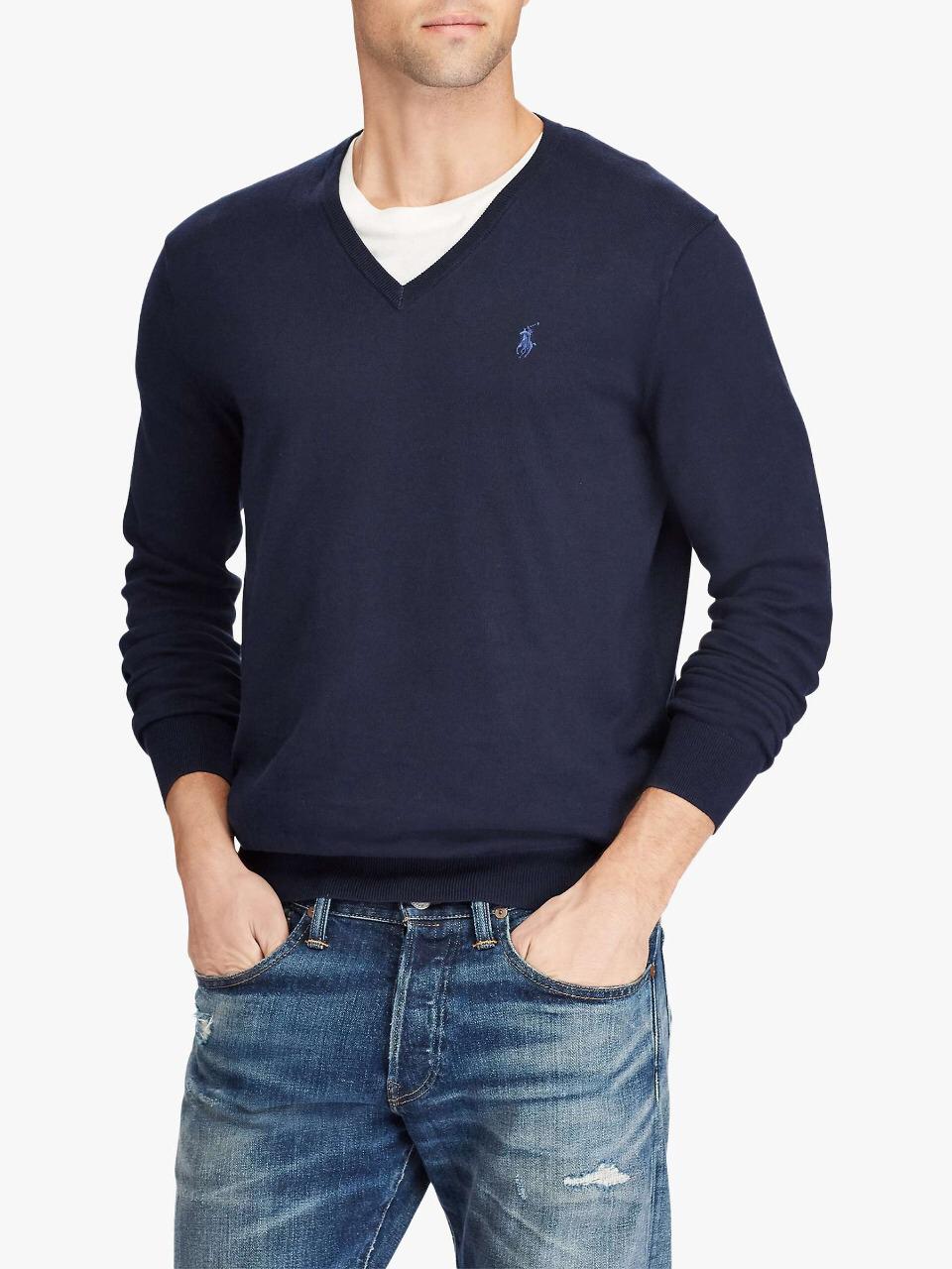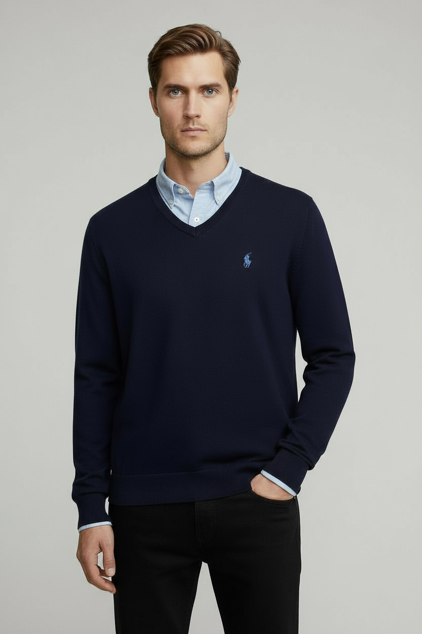 RL Navy Blue V-Neck Cotton Regular Fit Sweater
